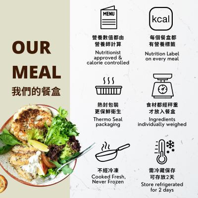 Every week we offer a wide range of western and Asian-based calorie-controlled meals with no same meal repeated twice in any given month. Please feel free to look at our menu for the kind of food we offer. Click here for the menu.